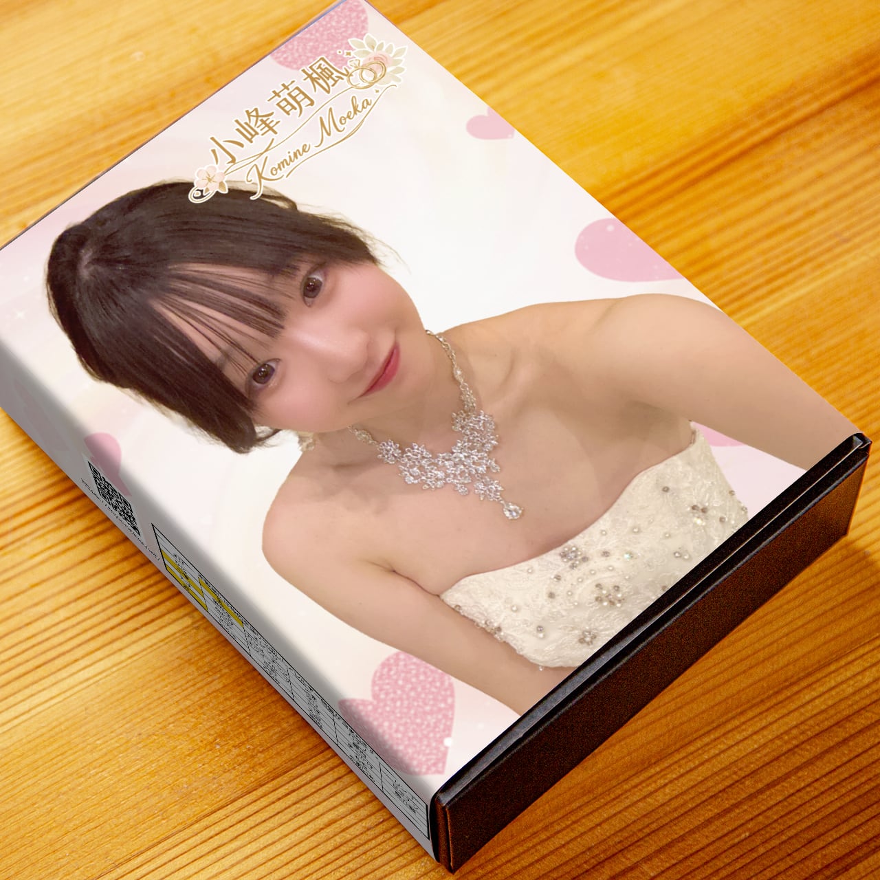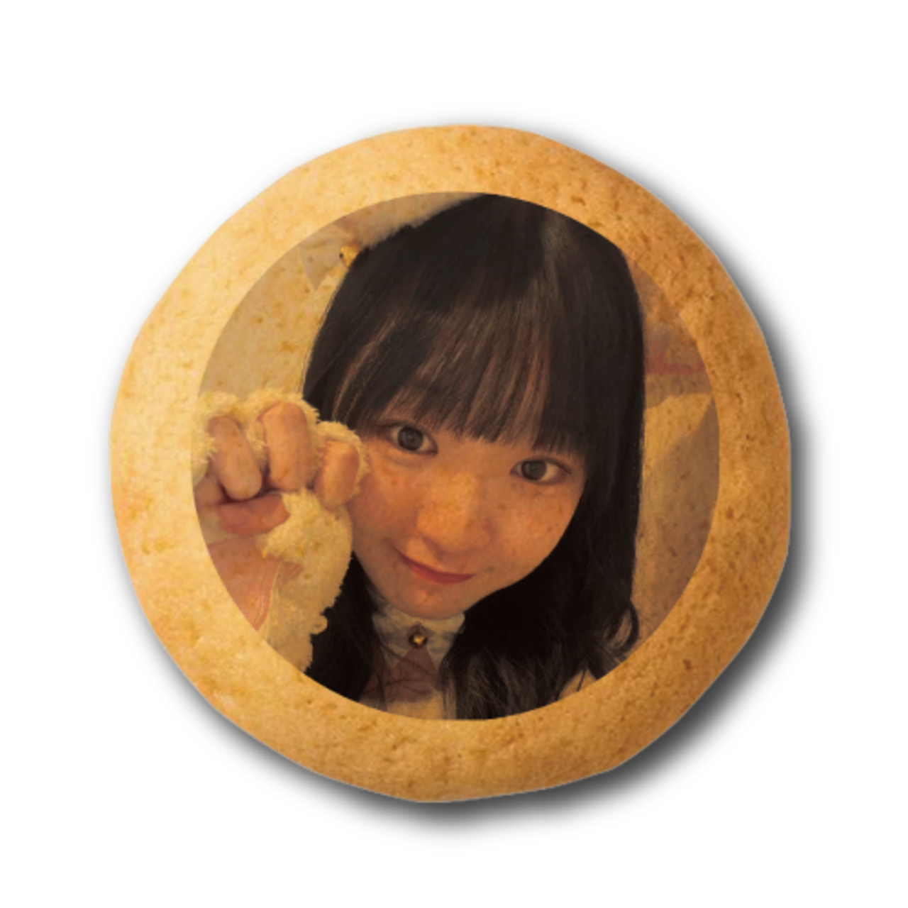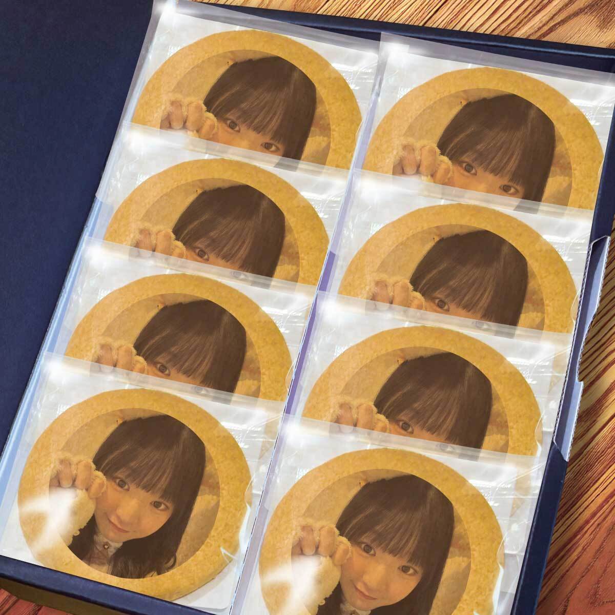 SHOWROOMで配信している「小峰萌楓さん」の写真がプリントされたクッキー。