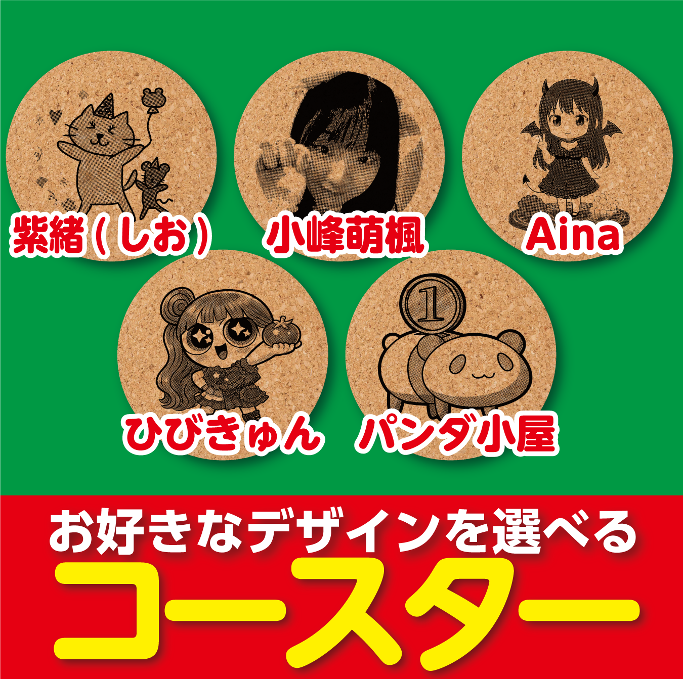 特典は、お好きな図柄を選べる、1点ずつ制作するレーザー彫刻コースターです。