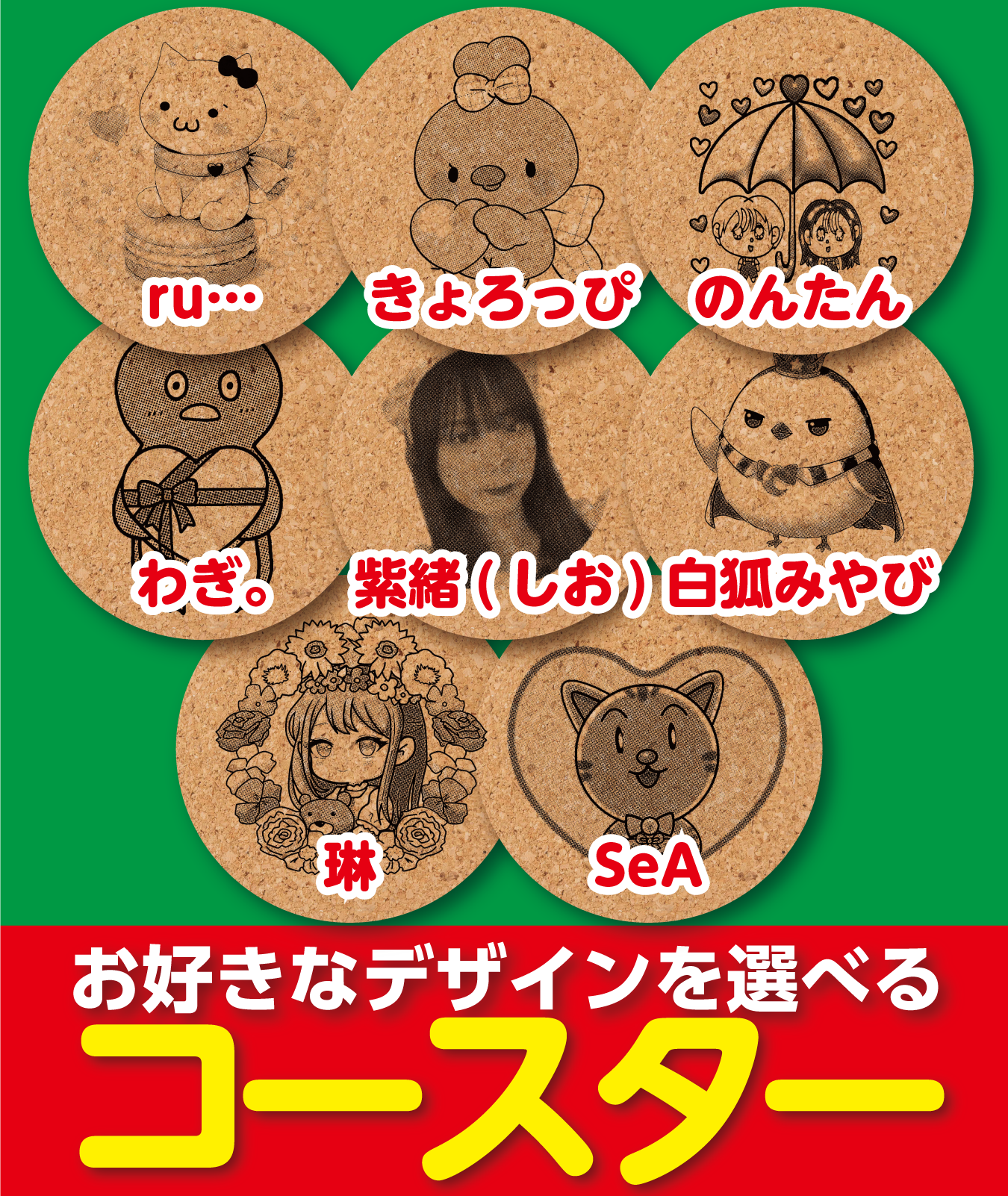 特典は、お好きな図柄を選べる、1点ずつ制作するレーザー彫刻コースターです。